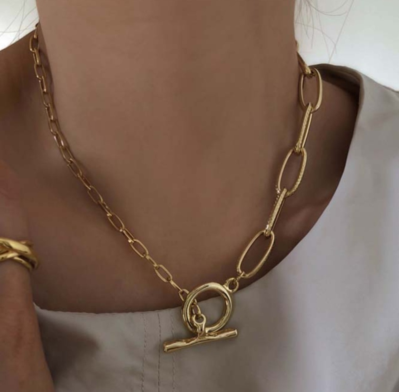 色:ゴールド 素材:真鍮等(k18コーティング) 長さ:41cm(多少前後することがございます)
